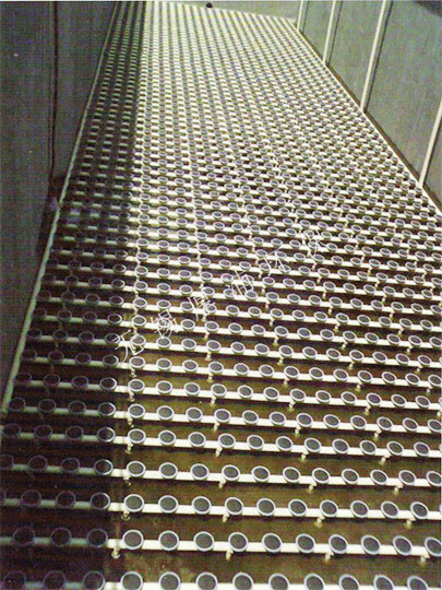 3. 由于膜片式微孔曝氣器可滿布在曝氣池底部,在池中溶解氧均勻,可適用于各種池型和深度,也可以對原有曝氣池進行改造,使其提高效果。