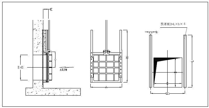 1、閘門應(yīng)按圖示位置安裝、閘板設(shè)于迎水面;